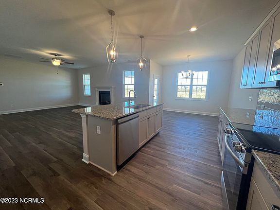 Enter into Foyer with 2 bedrooms and full bathroom to your side. Great Room with electric fireplace. Kitchen/Dining Combo - access to covered porch, large island, granite counters, pantry! Laundry Room off from Garage. 1st floor owners suite with trey ceiling, WIC, soaking tub, walk-in shower. Upstairs you'll find a 4th bedroom, full bathroom and HUGE bonus area!
