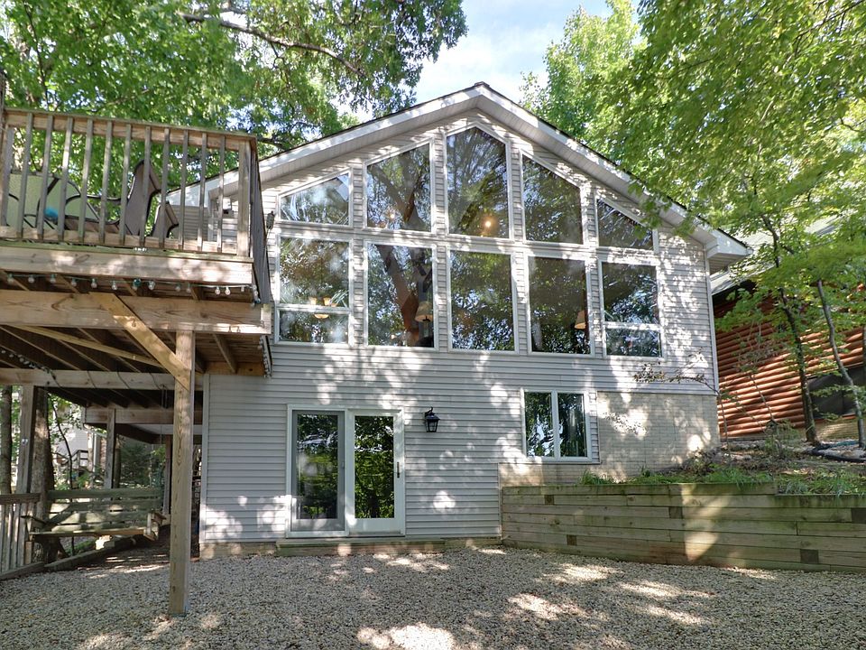 Lake living at it's finest! Situated on prime Lake Wildwood frontage, this spectacular home is truly a must see. Updates galore, and homeowner pride shown throughout. Featuring floor to ceiling lake and wooded lot views from the 15ft cathedral ceiling main floor living room with stone surround gas fireplace, the views are breathtaking. The main floor features master suite with en suite and guest room with an additional full bath and laundry. Large dining and kitchen are perfect for entertaining. Additional 4-seasons room overlooks the deck and addl. lake views. Walk-out basement with wet-bar is perfect for guests! With an additional full bath, guest bed and office/bed. Another egress window for a future additional bedroom at buyers discretion. Trex decking and boat lift + 2nd docking spot provide for unlimited water fun! On-Lake sun deck allows for endless days/nights of enjoyment. 2-Car garage, with large loft for extensive storage. Too many association amenities to list!