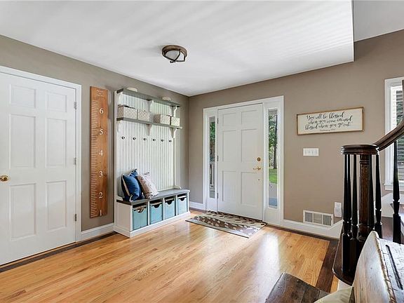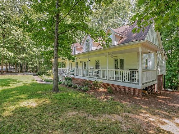 Come catch admirable sunsets from this rocking chair front porch nestled on 3 wooded acres. Entryway boasts beautiful hardwoods leading to Great Room featuring High Ceilings Recessed Lighting & FP. Master Suite & Bedroom on Main. Granite countertops with custom cabinetry & new flooring. Separate Dining for entertaining. New flooring & vanity in bathrooms. Hardwood staircase leading to two spacious bedrooms & full bath. Finished daylight/walkout basement & full bath. Screened back porch. Amazing school system. Enjoy the privacy with no HOA yet still minutes from 400!