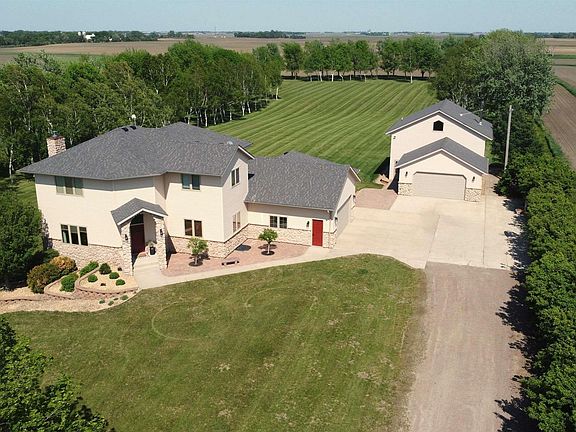 This five acre estate features a pristine two-story house and an intriguing 900 finished square foot entertaining space with loft. There is a total of five garage stalls with three stalls attached to the home and two stalls detached. This property is nestled within two miles of Marshall just off the black top. The home boasts five bedrooms, four bathrooms, main floor laundry, and two fireplaces. You will love the abundant natural light, the wood craftsmanship, and immaculate condition of this home. Other enhancements include, geothermal heat/ac, rural water, a 2022 roof, and exterior entertaining with a walkout basement to the patio and deck. Call to learn more or book a private showing.