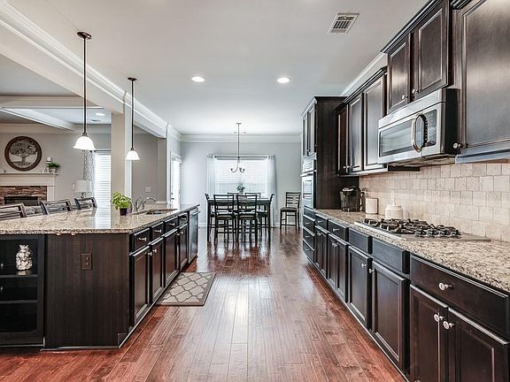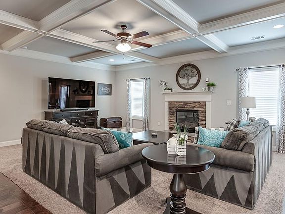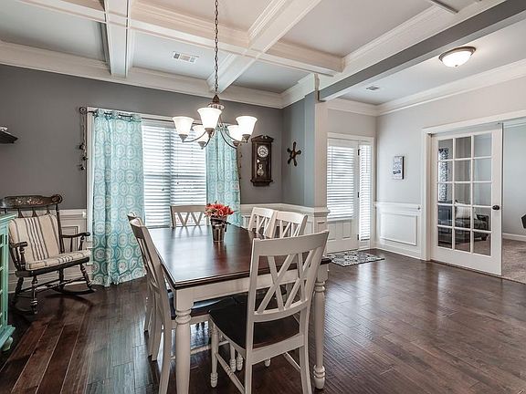 This house has it all! Open concept with spacious kitchen with x-large island complete with storage & breakfast bar, stainless steel appliances, separate breakfast area, granite countertops, tile backsplash & tons of cabinets overlooking fireside great room with coffered ceiling. Office/flex room on main with french doors. Separate dining room with coffered ceiling. Guest bedroom & full bath on main featured tiled shower surround, upgraded tile shower floor & bath floor. Hardwood floors in foyer, hallways, dining room, kitchen & breakfast area. Mudroom area off garage.