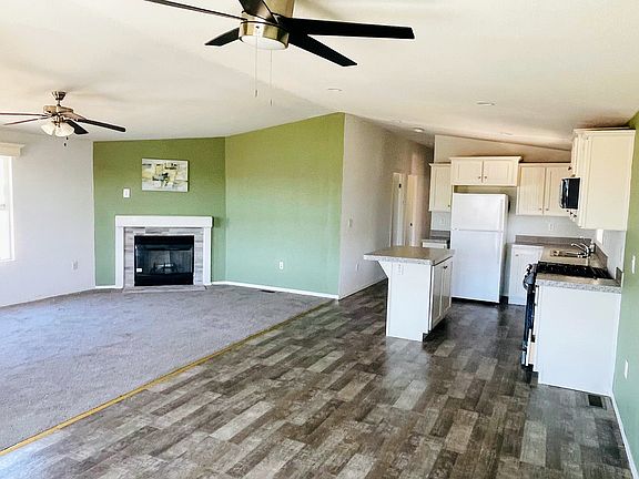 Built in 2019, with vaulted ceilings throughout, fireplace, island kitchen, dining room with walk-a-bay window, laundry room. 3 large bedrooms with plenty of closet space. Main bedroom with walk-in closet. Double sinks in main bathroom. Central AC and Heating. Washer and dryer provided. Full length carport. Front porch. In All-age, modern community with clubhouse, gym, dog park, and swimming pool. Only quick 2 minutes to Colorado River recreation park and boat ramp. 5 minutes to low priced AZ gasoline prices. We offer a 24 month lease with rent freeze guarantee. 12 month minimum lease. 24 month with rent freeze guarantee. $55/adult application screening fee