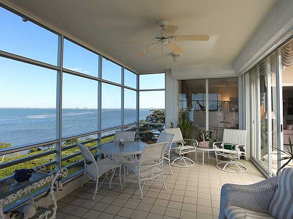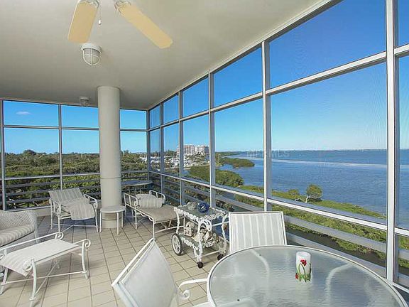 You will feel like you live in a private bayfront home. This spacious and bright Marina Bay corner residence has amazing wraparound terraces, wonderful light filtering through the additional windows and amazing panoramic views of the bay, city and marina. Very, very quiet and private, this condominium home boasts enormous living and family room and a generous kitchen with bar and breakfast room, built-in desk and huge laundry room. The three roomy en suite bedrooms have full baths and access to terraces. The third bedroom is being used as an office and has attractive built-ins. The master suite offers a deluxe, updated master bath with separate tub shower and large walk-in closets. There is also an open terrace on the westerly side that provides dramatic sunset and Gulf views. You can enjoy the complex's recreation center with pool, exercise room and tennis courts, onsite management, and deeded beach access with private beach club. Conveniently located next door to the marina and a quick drive to restaurants, shopping and St. Armand's Circle. Marina Bay has a healthy association and fully funded reserves. One pet up to 30 pounds is welcome.