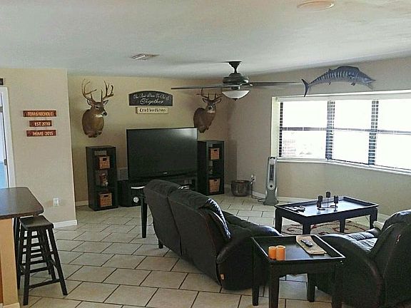A Must See Completely Remodeled Gorgeous Open Floor Plan.Everything in this home is brand new w/a lush,large back yard perfect for privacy,entertaining and pets.Roof is 10 years old. All appliances, air conditioner (Carrier), hot water heater, electric panel, floors are all 1 year old. Beautiful 18 inch tile on floors and carpet in bedrooms, 5 ceiling fans,new insulated garage door over-sized double car garage,extra room office under air. Screened in porch,charming back patio,2 panel bedroom doors that are 36 inches wide,large deep closets throughout.Inside and outside just painted.Surround sound in the living room,under the kitchen counter lighting,birch kitchen cabinets w/ hydraulics on the drawers and crown molding,large laundry room w/2 closets, CAT 5 Cable and much more!