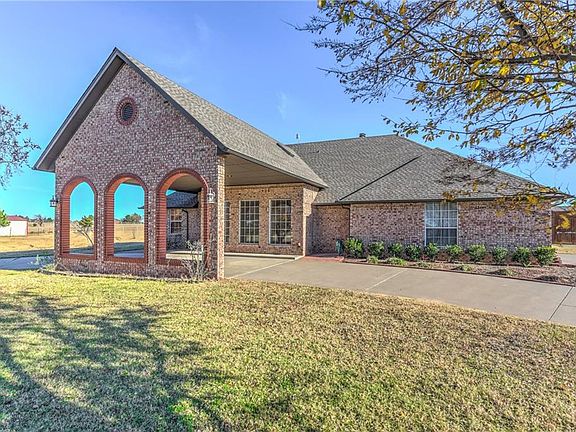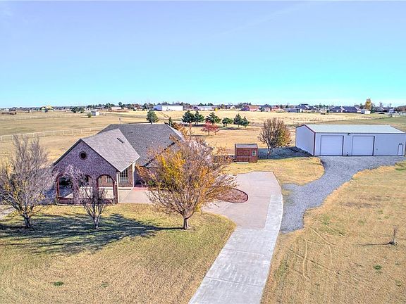 Beautiful country home, better than new! 2700+ square foot home with nice open layout, high ceilings on a very quiet cul-de-sac. This home features 2.53 acres with a horseshoe driveway and portico. Home built in 1996 has 4 bedroom/3 full bath and new Bamboo hardwood floors. Updated kitchen with granite countertops, tile backsplash, recessed sink, under counter LED lighting, and new stainless steel appliances. Large living room with wood burning fireplace and formal dining room. Large Master bathroom has a stand up shower and Jacuzzi tub, with an Australian Closet. Two car garage with storm shelter. Freshly painted inside and out, two brand new air conditioning and furnace units. New roof in 2015 with gutters added. Bonus room upstairs with full bath and built in desk area. 60x40 fully insulated, frame welded barn, loft storage area with stairs and 3 remote controlled bay doors on a slab and its own breaker. Superb craftsmanship from builder Gary Roles. Mustang, Banner or Yukon Schools.