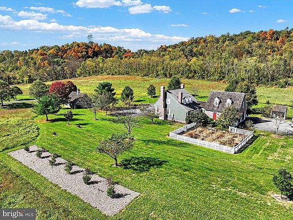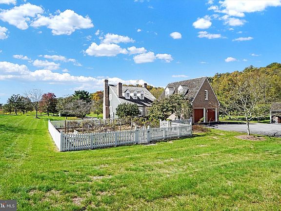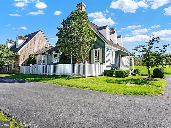 Welcome to this stunning home situated on a breathtaking 10+ acre property! As you enter through the charming white gate, you are greeted by a picturesque tree lined driveway that guides you up to the home which is set against the backdrop of serene mountain views. With 2,424 square feet of beautifully finished living space, this home is filled with wonderful features throughout. Step into timeless elegance with this custom-built home by builder Dave McMillan, a replica of a historic Williamsburg, VA residence. From the moment you enter the foyer, you'll be greeted by cherry hardwood floors, crown molding, and chair railing, all exuding classic charm. The formal dining room impresses with its hardwood floors, fireplace, crown molding, chair railing, and window treatments, creating the perfect ambiance for entertaining. The library is a retreat of sophistication, offering hardwood floors, a cozy fireplace, custom crown molding, built-in bookshelves, chair railing, and window treatments. The inviting family room boasts vaulted ceilings, skylights, hardwood floors, a ceiling fan, and a wood-burning fireplace, making it the perfect gathering spot. The eat-in kitchen is a chef's delight with top-of-the-line appliances, hardwood floors, a built-in desk, quartz and butcher block countertops, an island for prep, and ample space for casual dining. Convenience is at its best with a main level laundry room featuring tile floors and built-in cabinetry. Upstairs, you'll find two spacious bedrooms, each with hardwood floors, window treatments, and their own full bath with beautifully tiled shower. The upper-level loft offers versatile space for a home office, playroom, or additional living area. The outdoor space is just as captivating as the interior, featuring a brick patio that overlooks the white picket fenced beautifully landscaped backyard with private courtyard, water fountain and grapevines that add a touch of natural elegance and overlook the expansive grounds. Whether you're hosting guests or enjoying a peaceful afternoon, this outdoor oasis offers the perfect retreat. Additional barn/carriage house on the property. An unfinished basement with 10-foot ceilings provides plenty of storage or the option to finish it off. A length driveway and oversized heated two-car garage completes this exquisite home. Newer HVAC unit in 2022. Home features a filtered water treatment system and a Generac backup generator connected to propane. Professional exterior painting completed in August 2024. The buyer has the first rights to the additional neighboring parcel of another 10+ acres (parcel 100-059.00-113.000), please call the agent to discuss pricing. Home is not currently in clean in green, but is an easy application process for prospective buyer. Current deal with farmer to cut the hay. Enjoy the tranquility and privacy of this lovely home while still being within easy ready of modern conveniences. Truly, a one-of-a-kind property. A joy to own!