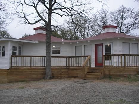A couple of hundred yards from the lake, within a mile or so of the boat ramp, great location to Guy Sandy Cove at Arbuckle Lake. Near Turner Falls, 5 miles from Davis, Oklahoma. Unique lighthouse style home on big lot (3/4 acre). Winter lake view. All new: roof and siding, front deck, trash compactor, living room ceiling fan, tiled bath, tub/shower faucets in both bathrooms, all new mini-blinds throughout entire house, new toilet flush kits, light switches, covers and plug covers, new kitchen window, new paint inside and out, new carpet. Beautiful new texture in bedrooms, bathrooms and hallway. Garbage disposal, walk-in closet in master bed. Enclosed deck sunroom/storage room with new door and easy-clean windows. Gas fireplace with insert with blowers. 1600 SF - huge living room, 2 bedrooms, 2 baths. Breakfast bar, washer, dryer and new side by side fridge with ice and water in the door included. Great new deck for entertaining. Fenced. Cleanest, most updated lake house around. 13' x 22' Garage/Storage Building