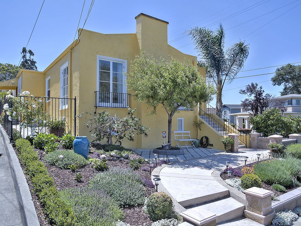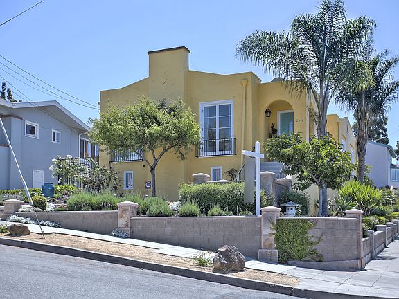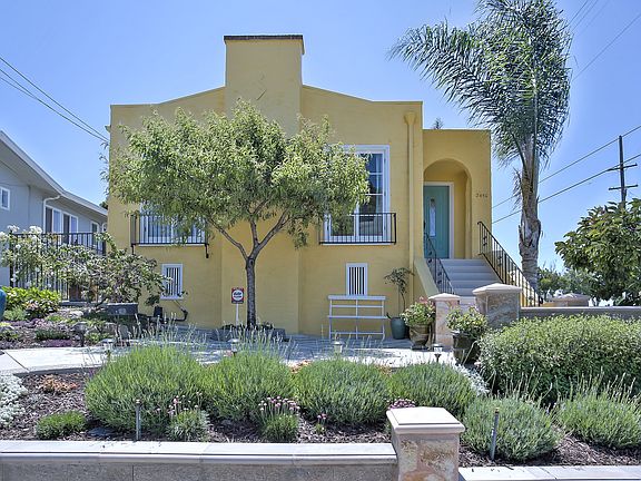 Charming, light filled 3 bed 2 bath Mediterranean-style home in the heart of Maxwell Park. Greeted by a lovely front patio w/ flowers and mature plantings. Inside, hardwood flrs throughout plus a large living room with handsome floor to ceiling windows. Great dining room w/ pressed tin ceiling looks out onto lovely west facing balcony - via two glass doors. Kitchen faces east and is large enough to accommodate a charming eat-in area. Access to the basement, laundry and backyard can be found off the kitchen. Down the hallway are three sunny BR's. One of the bedrooms connects to the balcony. Another bedroom hosts a full bath. Backyard is a Sunkissed paradise w/ fruit trees and stone patio surrounded by grass plus a divine Greco fountain. In the rear of yard is a separate office/studio - perfect for the times, this space has electrical, and engineered wood flooring. Detached garage has new EV charger. Home is perfectly situated on a rise to capture peekaboo city views. Not to be missed!