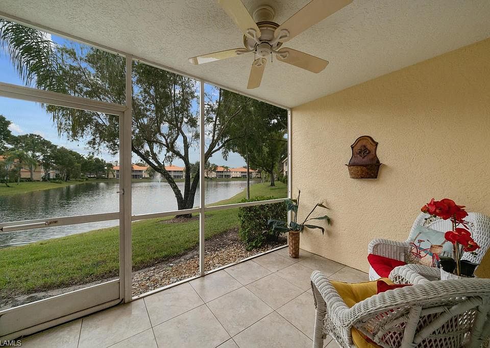 C.16929 - Your perfect opportunity! Nicely updated, tastefully TURNKEY furnished and move-in ready FIRST FLOOR condo in highly desired North Naples gated community, Pipers Grove! Preferred Southern rear exposure allows for plenty of light all day long. Updated stainless appliances, living area boasts newer leather sofa and love seat, newer sleeper sofa in the guest room. Relaxing lake and water feature views from your private lanai! NEW ROOF (approx. 2 years) & newly paved parking lot. Tiled living area and lanai, carpeted bedrooms. Pipers Grove is located in super popular and convenient North Naples, with shopping and dining right outside the gate. Walk to Publix! Vanderbilt Beach is just a three-mile drive down the road, and the Public Library and North Collier Government Center are even closer on Orange Blossom Drive. Enjoy this gated, active and friendly community with plenty of amenities including three swimming pools, lap pool and whirlpool spa, clubhouse, har-tru tennis courts, fishing pier, bocce and over two miles of walking trails. Full renovation to the main pool completed with no assessment to the homeowners. New picture frame screen cage with beautiful lake views!