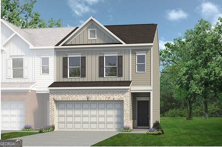 Move in Ready August 2025! The Norwood II plan, located in Smith Douglas Homes Sanders Park community. This end unit 3BR/2.5BA townhome has an Owner's entrance that offers convenient entrance directly into the kitchen. Easy access for putting away those groceries! The kitchen has a center island, upgraded 42" upper cabinetry for additional storage, granite countertops with a tile backsplash and dining area overlooking the family room that features a linear fireplace. Vinyl plank floors on main living area on first level. The second story is accessible via the open iron rail staircase leading to a loft area suitable for a desk/home office work station, a laundry room, two secondary bedrooms with a shared bath and the owner's suite with a tray ceiling and bath with a separate garden tub, tile shower and picture window above. Nine ft ceiling heights on both levels. Planned neighborhood pool and the lawn maintenance included in your HOA fees leaves you more time to do the things you love! Photos are representative of plan not of actual home being built. Seller incentives with the use of preferred lender.
