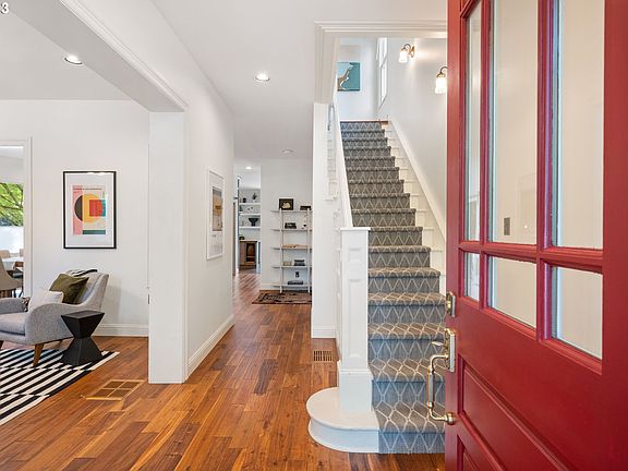 Illuminate ~ Captivate ~ Luxuriate.Host New Year's Eve here! What a splendid spot to call home - located on a quiet, treed corner, just a stroll away from the bustling Belmont and Hawthorne business districts, this Dutch styled beauty is at once an entertainer's paradise and a homebody's retreat. A glamour puss with an earthy side. Chill on the superb li'l people watching porch. Open the door to an expansive dreamhouse, dressed to the nines and bathed in filtered light with leafy outlooks. The sophisticated fusion of the hand scraped acacia hardwood floors and Rejuvenation light fixtures will have you sashaying through the main floor with its generously sized entry, living room, dining room, sunroom, overflow zone and marble counter top clad kitchen with top notch appliances. Pop through the Dutch door or one of the oversized sliders out to the deck to sunbathe or star gaze, soak in the hot tub and play in the fenced yard. Meander upstairs to the sunny hall, luxe bathroom, swanky primary bedroom with walk-in closet and double glass doors out to the 2nd story deck with a west hills view. How about the vaults and exposed beams! You're not done yet, up one more flight to the bohemian third floor hideaway. Oh, and think of all projects you can do in that basement! The whole package - location, pizazz and quality! Hurry, an offer has been received, but there is still time... [Home Energy Score = 2. HES Report at https://rpt.greenbuildingregistry.com/hes/OR10116378]