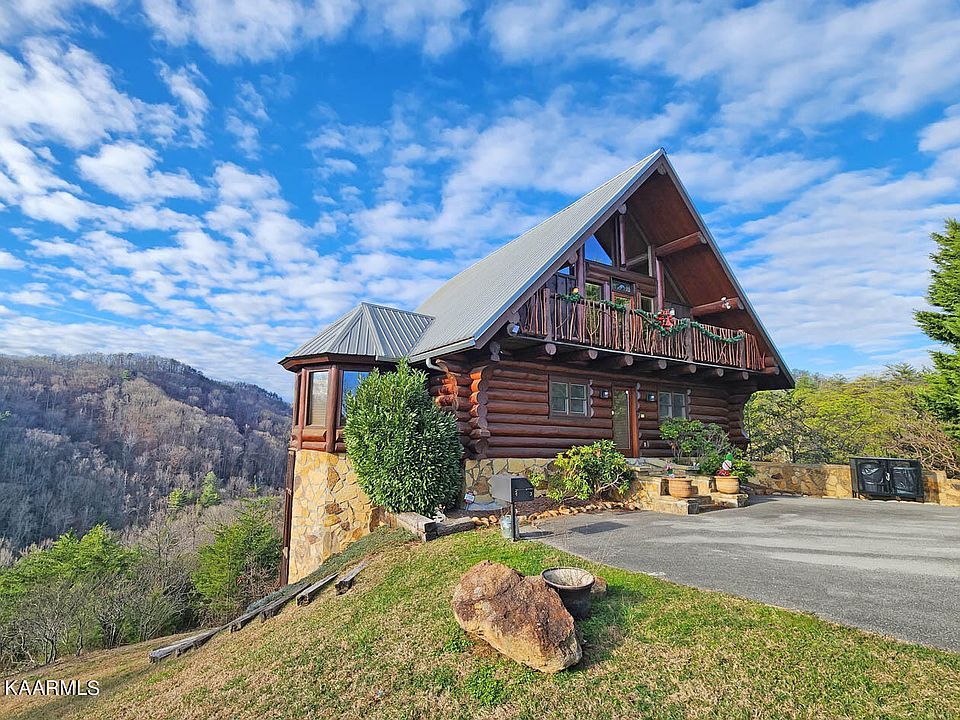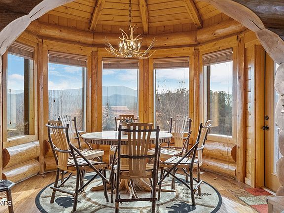 LUXURY CABIN built with impressive Canadian logs surrounded by STUNNING MOUNTAIN VIEWS in highly sought after Cedar Falls neighborhood. Mountain views from just about every window. CABIN CURRENTLY SLEEPS 12. Main floor features open living room, dining, kitchen, BEDROOM and bathroom. Impressive dining area surrounded by magnificent mountain views. You will love the kitchen with granite countertops, stainless steel appliances, flattop stove, classic black cabinets. UPSTAIRS is set up as a spacious SLEEPING AREA set up with a queen size bed, a futon, a couch and a private bathroom. DOWNSTAIRS you will find a spacious GAME AND MEDIA ROOM and another BEDROOM. 2 levels of deck with breathtaking views. Cabin sits on 2 acres and offers plenty of level parking. NEW HVAC 2022, NEW GRANITE COUNTERS, NEW HOT TUB, LEATHER SECTIONAL, BUNK BEDS AND TVs. Owners have been using the cabin mainly as a vacation home, renting it out only some select guests and family. Neighborhood offers community swimming pool, playground, picnic area with fire pit, basketball, volleyball, horseshoes, nature trail, catch and release pond. LOCATED 8 miles to Main Parkway in Pigeon Forge, 11 miles to the Great Smoky Mountain National Park, and only 16 miles to Gatlinburg. ~DRONE SHOTS INCLUDED IN PHOTOS