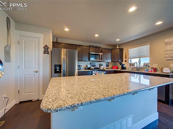 Take look of this beautiful two story with a full basement property! IS READY TO MOVE IN! LOCATON! LOCATION! LOCATION! this property has easy access to Markshefeel road and powers corridor. Is close to shopping centers, Fort Carson and Schriever base. This home features Granite Countertops, Stainless Steel Appliances, Granite Countertops, large Kitchen Island, Gas Range, extended Engineered Hardwood floor on the Main, Central A/C, Dining Room with Walkout on to Composite Deck, 5pc bath including dual vanity, free standing shower, soaking tub, ceramic tile accents & Flooring, Ceiling Fans, Finished basement with bedroom & bath, and a Rec Room, fully Fenced in rear Yard, with Sprinkler system for both Front & Back, Come take a look at all this home has to offer!