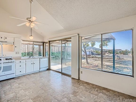 Welcome home to this Fixer Opportunity! Nestled in the highly sought-after neighborhood of Carriage Hills and boasting an incredible View, this property is the perfect canvas for those looking to pour their heart and soul into a home renovation project, while potentially building significant equity. Stepping inside, you are greeted by an airy and open floor plan that effortlessly flows from room to room. Offering vaulted ceilings in the living room and a spacious kitchen / dining area looking out on the backyard and views! Sold AS-IS, the potential is immense to transform this dwelling into an absolute gem. Picture yourself sipping your morning coffee on the patio, surrounded by blooming flowers and enjoying the breathtaking backdrop that only nature can provide. Situated in a phenomenal neighborhood, this property is located within close proximity to Mt. Helix, Rancho San Diego and the 94/125 freeways. Enjoy easy access to shopping, restaurants and services, ensuring a convenient lifestyle and endless entertainment options.