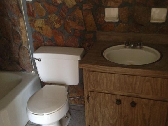 Efficiency apartment with tile floors, cold AC and original stone work in bathroom. Large great room has kitchen area and plenty of room for living room and bedroom furnishings.