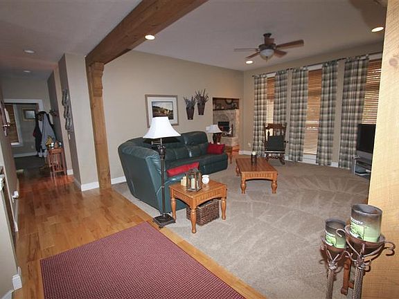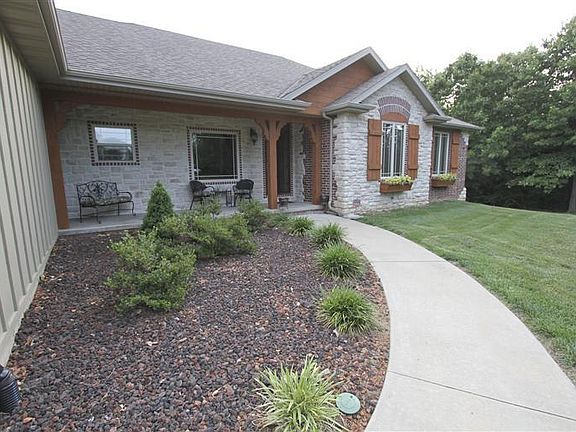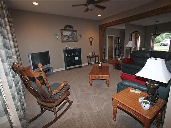 Click the virtual media for onsite-tour or go to YouTube.com/user/sherrieloveland.Built in 2004, like new condition.Find peaceful living in this finished walkout basement(approx 4950 sq ft)on 4.1 ac of scattered,mature trees.Located on dead end cul-de-sac with pasture behind home. Features include maple wood floors, granite coutertops in kitchen,baths,and wetbar;hearth room off kitchen with gas FP,double ovens,walk-in pantry and a laundry room to die for!Main level has 3BR's, 2 baths, office, and great room.Basement includes a large rec room with 2nd dining nook,wet bar,2 BR's(one could be 2nd office or media room;has windows/no closet),1 full bath, John Deere room, 2 storage areas AND huge storm shelter. Exterior is Brick/stone/concrete board siding (Hardie-board). The deck has been refurbished and repainted/over garage/shudders/flower boxes. The park-like back yard offers a firepit and plenty of room for swimming pool.New AC unit for main level in 2010.Home Warranty included