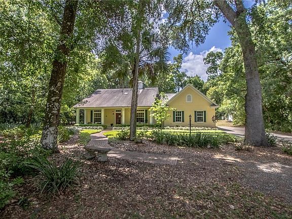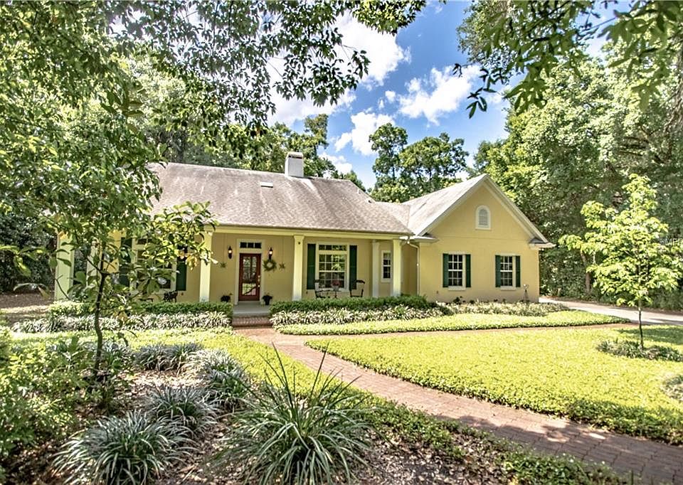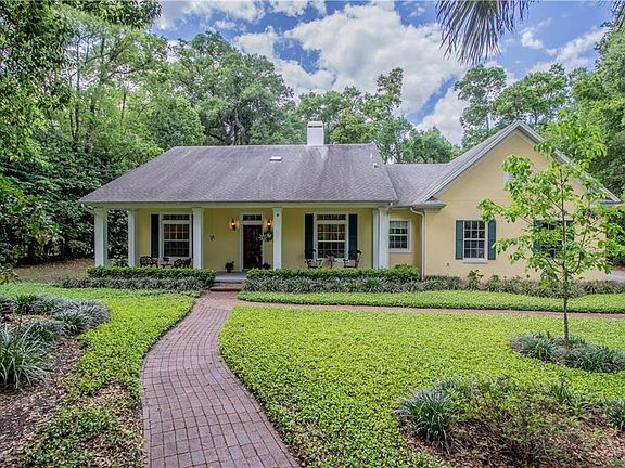 STORYBOOK PERFECT! Tucked quietly under the CANOPY OF MAJESTIC OAKS rests this sweet retreat w/its INVITING CHARM, WARM CHARACTER & SIMPLE SOPHISTICATION! The front yard is enchanting resembling a refined English garden w/a CARPET OF JASMINE & TWO RED-BRICK PATHS meandering to a FRONT PORCH FIT FOR ANY SOUTHERN HOME! Through the GLASS-PANED FRONT DOOR, guests are greeted in style w/a TWO-SIDED, WOOD-BURNING FIREPLACE, a natural wood laminate floor, HIGH CEILINGS...and a glance to the heart of the home where the ENTIRE BACK WALL IS LINED w/WINDOWS bringing the outdoors in reminding that this home is centered in & surrounded by the serenity of flora & fauna. The dining area, placed strategically between the casual & formal living areas, provides well for every day family meals, but as there is plenty of room to expand into the adjoining family room, also serves large crowds elegantly during special holiday celebrations. The kitchen is as gorgeous as it is functional...THREE TINTED-GLASS WINDOWS always providing a bright and beautiful backdrop, NEW SS APPLIANCES, GRANITE, GLASS-PANELED CABINETRY. A glass side door leads into a true FLORIDA ROOM, classic w/its RED-BRICK FLOOR, soaring ceilings, and FRENCH DOORS opening onto a spacious WOODEN DECK. The master suite is also tastefully designed with a generous WALK-IN CLOSET & a LUXURIOUS ENSUITE boasting a DOUBLE VANITY, JETTED SOAKING TUB & SEAMLESS GLASS SHOWER. As a SPLIT FLOOR PLAN, two additional bedrooms share a hall bath on the other side of the home.