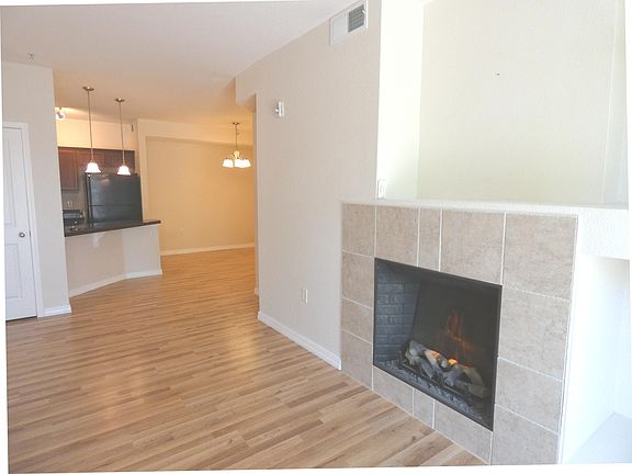 Wonderful main floor condo with easy access from parking area! Hardwood floor throughout, huge windows, cozy low-maintenance fireplace, central AC, and washer/dryer included. Kitchen features breakfast bar, granite tops, beautiful cabinets and open concept with views of dining and living.