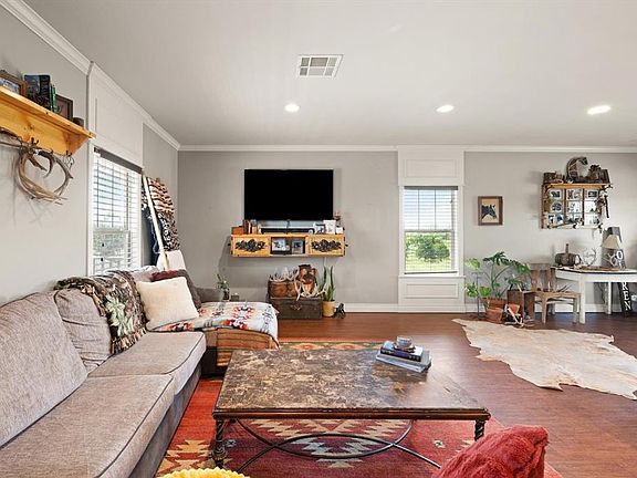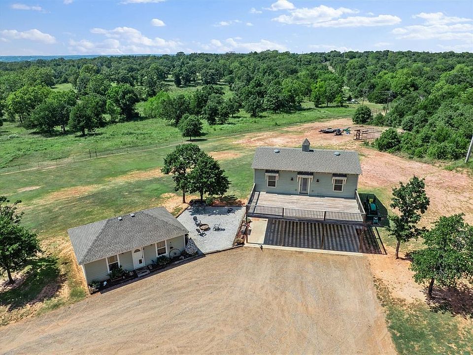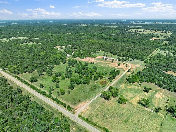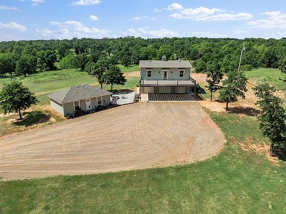 Welcome to your dream home nestled on 36 acres of picturesque land, where tranquility meets modern comfort. This acreage has been cleared with riding trails throughout the property. Take a ride on your horse, side by side or 4 wheeler to enjoy the natural spring, or take in the scenery of the stunning rock formations while you enjoy the sunset. The property is home to abundant wildlife including trophy deer, turkey, and bobcats that you can enjoy viewing seasonally, or if you are an avid hunter, you can partake of your sport from the convenience of home. This stunning property boasts an open layout that seamlessly blends the living, dining, and kitchen areas, all with breathtaking views of a serene pond. With 12 acres of cleared land and 8 acres of fenced pasture, this is an ideal retreat for those seeking privacy, space, and natural beauty. The outdoor entertainment area was perfectly designed to host gatherings with family and friends and can accommodate either during the day or into the late night hours with the strategically placed outdoor lighting. Designed for comfort and efficiency, the home features an oversized HVAC system to keep you cool during hot Oklahoma summers and energy-efficient foam insulation. Enjoy the convenience of well water, ensuring fresh and sustainable water supply year-round.