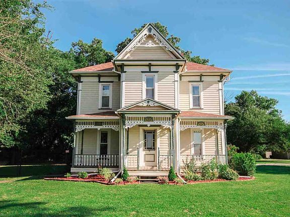Prestigious 5 bed, 2.5 bath Victorian home in charming Viola. This home is the pinnacle of Kansas history, with modern amenities, while keeping its vintage nature. Sits on 5 acres of land with views of trees, farmland, and nature from every window. Small business owners and artisans can enjoy the workshop wired for 220V; AC and heater already in place. Patio includes a large built-in hot tub with a gorgeous view of the night sky and surrounding scenery. This home features custom details such as energy efficient, Bali blinds, and a full-reverse osmosis water filtration system. Each room has a fantastic view. The seclusion of this home makes it sought-after for parties and weddings. Call today to schedule your private showing!