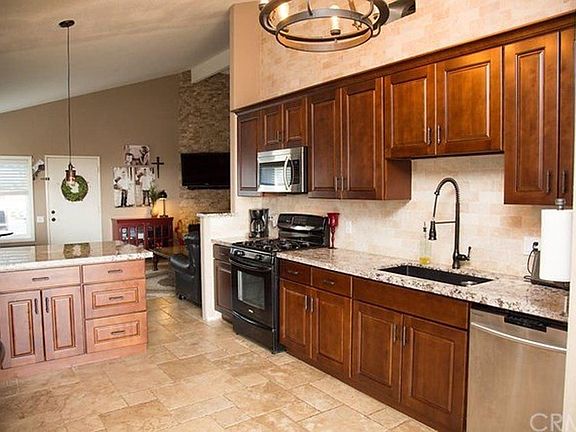 Unobstructed Mountain and City Lights View!! Dream Single Level 3 Bedroom Home with sunset views! Remodeled Kitchen w/ Custom Cabinets and granite counter tops and breakfast bar, new gas range, microwave plus kitchen/work nook and opens to large living room with ledger rock surround fireplace. Custom Versailles pattern tile throughout (no carpet in a house). Master suite offers remodeled fully tiled floor-to-ceiling shower and sliding door entry to large covered patio and expansive views plus an assortment of fruit tress - Lemon, Orange and Avocado. Remodeled bathrooms and custom vanity and mirrors. Updated Dual Pane Windows. Central Heat and AC. Inside Laundry. Three Car Driveway. Exterior block walls. Two car garage. Membership of Lake Mission Viejo paid by landlord. Close to schools, shopping, hiking trails and parks/sports fields. Schools: Elem K-5: Reilly, Mid: Fred Newhart, HS: Capo Valley. Please call to schedule the viewing.
