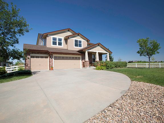 Welcome to the most beautiful lot in all of Murphy Creek! This stunning home offers 4 bedrooms, 3 baths and a finished basement with a rec room and media room. Situated on a cul-de-sac that is quiet and secluded with no through traffic you will find yourself in the middle of a tranquil oasis extending on three sides of the the award-winning Murphy Creek golf course. Adjacent to the most beautiful green on the course, due to the waterway you will enjoy stunning views from any of the three back decks which face west. Relax and experience the sun set over expansive mountain views from Pikes Peak to Longs Peak each evening. The main floor welcomes you with hardwood floors throughout. Enjoy the magnificent views from the eat-in kitchen with solid maple cabinets, granite tile countertops and stainless steel appliances. The main floor bedroom and ¾ bathroom are sure to make any guest feel at home. A large dining room, a butler’s pantry/wet bar, a huge mudroom, a 2 story family room with a 3 sided fireplace rounds out the main level. The second story offers an upstairs laundry room, a loft and 3 additional bedrooms, to include the spacious Master retreat and an additional bath with dual vanities . Relax in the Master retreat with a private deck, vaulted ceilings, custom bamboo window treatments and a walk-in his/her closet. The recently remodeled 5 piece master bathroom includes a double sized glass shower with two shower heads, travertine tile with decorative glass and metal accents, a massive soaking tub, dual vanities, maple cabinetry and a water closet. The industrial finished basement has abundant storage, upgraded carpeting, a handcrafted reclaimed Barnwood sliding barn door and is the perfect spot for a pool game, ping pong or enjoying movie night. The 3 car garage is a handyman’s dream. All of this beauty is nestled into a top ranking K-8 school. Hurry! This beauty won’t last long.
