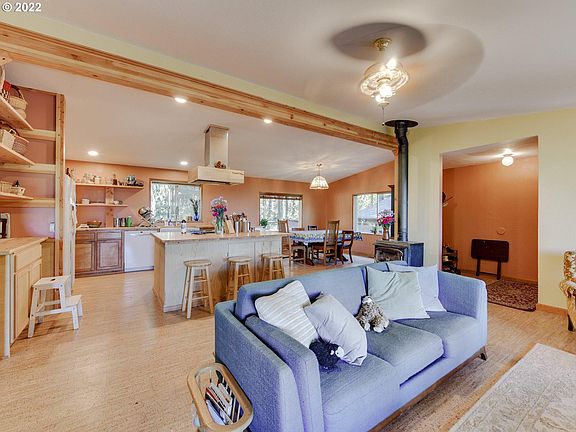 Close In 4.92-acre Country Oasis. Set up home, set up shop, set up life in your own little pocket of Oregon?s splendor. Options are endless on this spacious nest of property. Features include 3 bedrms, 2 baths, open floor plan with dining area, recently updated kitchen, master bath, fresh paint & cork flooring, throughout. Wrap around porch with amazing views of the Cascade foothills. Oversized garage/shop, Barn w/ tack room. Enjoy Hopkins Demonstration Forest at end of road.