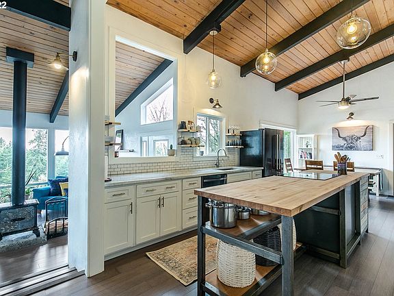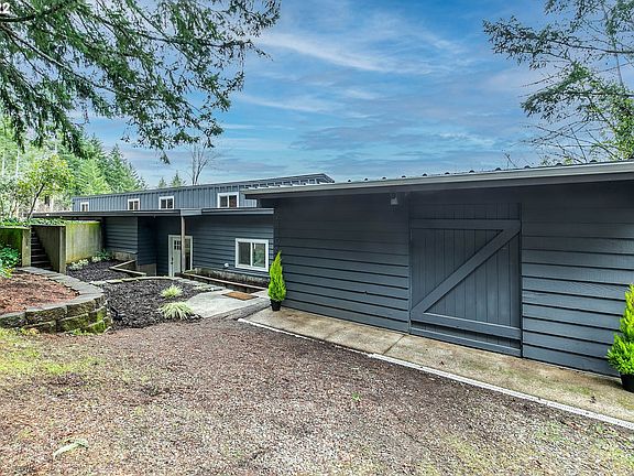 THE VIEWS!! Beautifully remodeled home tucked into the landscape. High end finishes. Extra tall ceilings & expansive picture windows will have you enjoying the views of trees, mountains, wildlife & the beautiful skyline! There is so much potential for developing the acreage for a shop, parking, farm animals, gardening & more! Includes a new HVAC system as well as new expansive deck & railing. There is a detached studio w/220 amp. Very private country feel and close proximity to Fern Ridge Lake.
