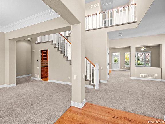 Welcome to this beautiful home on a corner lot in the quiet neighborhood of Tallyn's Reach. This home is spacious, with an open floor plan, high ceilings, and shutters throughout. Upon entering this home it greets you with grandeur, showcasing the vaulted ceilings and open staircase. Featuring a main floor primary bedroom with crown molding, a 5 piece on-suite bathroom including a large soaking tub, vanity area, and a huge walk-in closet. The expansive gourmet kitchen has double ovens, a butler's pantry, large eating area, and breakfast bar. The additional 3 bedrooms are located upstairs; one with a private on-suite bathroom and an extra large bathroom with 2 sinks for the other 2 bedrooms to share. The 2002 square foot basement is unfinished and ready for your future needs and imagination. 2 car garage that can be accessed from the home, and a 1 car garage for special toys or tools. Cherry Creek Schools. Many neighborhood amenities such as trails and a community pool are waiting for you to enjoy. Mature trees and pristine landscaping.