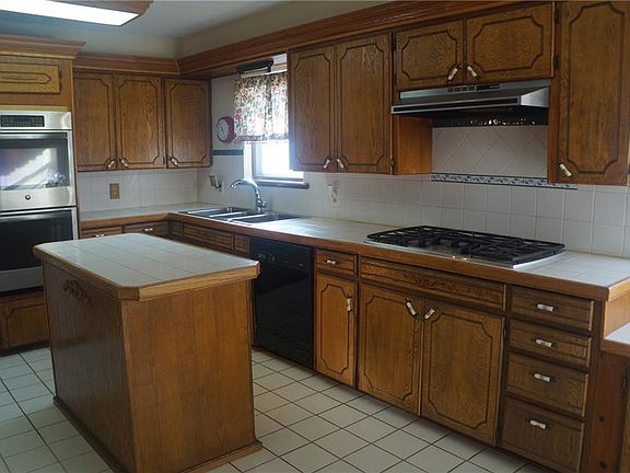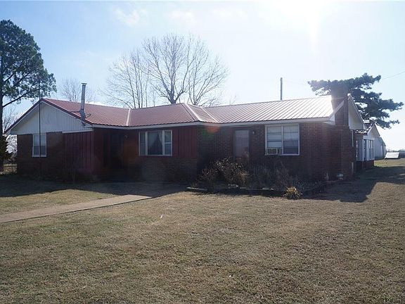 Adorable 1712 sqft 3 bed 2 bath brick home with metal roof. It offers updated kitchen appliances including a double oven, dishwasher, triple stainless steel sink, gas range, and island. This home sits on 4 acres with a greenhouse, cellar, and 2 storage buildings.