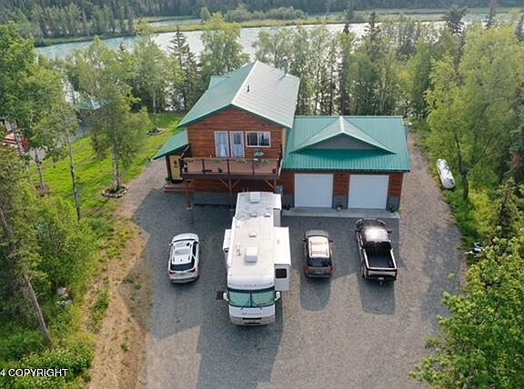 Nestled within the untamed beauty of Alaska, lies this amazing 3 bedroom, meticulously crafted home. Custom wood, tile, and ironwork create an atmosphere of rustic elegance, while luxury vinyl plank flooring offers durability without sacrificing style. The chef's kitchen stands as a focal point, inviting culinary adventures with top-of-the-line appliances and ample workspaceIndulge in the glass dining/solarium room, a sanctuary bathed in natural light, perfect for savoring meals while basking in the surrounding beauty. California Closets systems in the closets, offer organization and ease. Welcoming you, are two expansive Trex screwless decks, offering a seamless transition between indoor comfort and the breathtaking outdoors. Safety and convenience are paramount, with a comprehensive security system and smart thermostats ensuring peace of mind. Wired for a full house generator, this sanctuary stands resilient against the whims of nature. Positioned at mile 5.25, this haven offers access to the legendary "100% percent hole," renowned among river guides for its bounty of Alaskan salmon, trout, and steelhead. For the adventurous at heart, two 50 Amp RV parking spots beckon with full hookups, ensuring convenience and comfort for your nomadic spirit. Meanwhile, the 32'x30' attached garage boasts dual 10'x10' garage doors and a rear mandoor, a haven for your vehicles and outdoor gear. Whether casting a line from your dock or venturing downstream to the mouth of the Kasilof, where dip netting for Sockeye awaits just 4 miles away, this residence promises unparalleled access to Alaska's natural wonders.