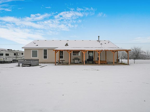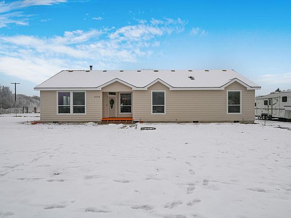 MLS# 265869 - OPEN HOUSE CANCELED 12/24/22. A beautifully remodeled, custom-built manufactured home on almost four acres with room for animals and is located in a quiet, country setting. Recently painted inside and out, new front porch and brick patio in the back yard, new gravel driveway and RV parking, new windows, and new wood laminate flooring in the master suite bathroom. This home features an open and spacious living with vaulted ceilings, oversized windows, energy-efficiency craftsmanship, high ceiling design, walk-in closets in all the bedrooms, and oversized bedrooms for design and comfort. The spacious and extensive kitchen has tons of wood cabinetry, a walk-in pantry with an extra refrigerator, a breakfast bar with an island and storage, ample countertops, and new appliances. Sit back and enjoy the cozy wood fireplace in the dining and great room combo, and the adjacent spacious kitchen creates a nice gathering space for the whole family. The laundry room has a powder bath and access to the backyard-covered patio. The master suite features a den or could be a workout space, a walk-in closet, an expansive size bedroom, a master bath with a soaker tub, dual sinks, and a separate lavatory. The new laminate flooring also showcases the room beautifully. The backyard concrete patio is fully covered, has a hot tub, and newly installed brick pavers give the space tons of room for entertaining family and friends. If you enjoy having animals, this is the place for you with several fenced pastures, fully irrigated, and mature landscaping with new concrete curbing. There is also a large outdoor storage building (20 x 40) with a concrete floor for all your tools & equipment, a small shed, and a shed/chicken coop/well house combo. There is also a 40 x 60 steel building with beams & insulation, full engineering drawings, a John Deere tractor, and several pieces of farm equipment for sale. Please ask for more details. Can you call today for a personal showing?