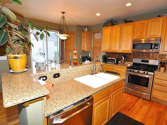You must see this gorgeous home in the beautiful neighborhood of Murphy Creek! Upon entry you are meet with grand, vaulted ceilings, neutral paint colors, gleaming floors and an abundance of natural light! Spacious open floor plan features a formal dining room and living room. Open eat-in kitchen is complete with matching stainless steel appliances, an island, gorgeous back splash and tons of cabinets. The kitchen flows into the family room with a fireplace and tons of natural lighting, ideal for family gatherings! Upstairs you'll find the king-sized master suite with vaulted ceilings, a sitting room with a fireplace, and a private 5-piece master bath! 2 additional bedrooms which share a full bath are also located on the upper level. The backyard is fully landscaped with a great patio area! This well-kept home will not disappoint! Schedule your showing today!