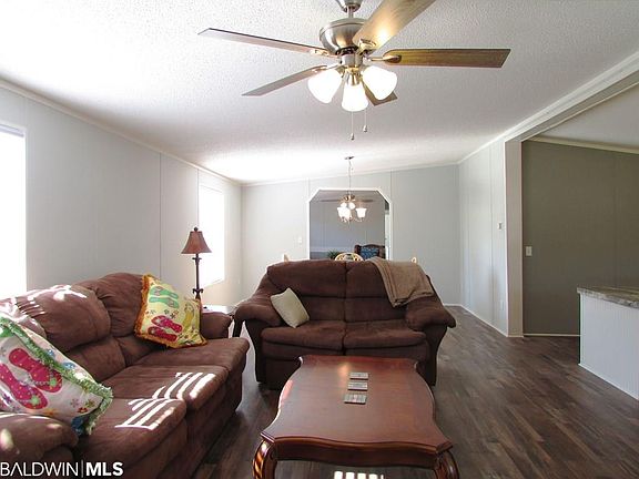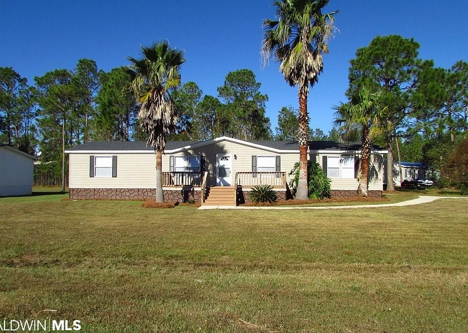 Best deal in OB! A large corner lot that is fenced so you can keep your boat in the back yard. This adorable mobile home has been totally redecorated. It has new roof, new floors, new kitchen counters, new light fixtures, new paint, new bathroom vanities, new ceiling fans, and new skirting. This precious home has a central cathedral ceiling running the length of the house. It comes furnished as seen in the pix. Washer, dryer, refrigerator, stove, dishwasher, garbage disposal all come with the home. The kitchen is large and overlooks the huge living dining room combination. It also has a small bar area with stools, tons of cabinets and counter space. There is a bonus room right as you enter at the front of the home. The master suite is large with a big walk in closet and humongous master bath with separate shower and garden tub as well as new double vanity. The 2nd bath has new vanity and tub w/surround combo. The laundry room is large enough to put a freezer in it. 3 mature palm trees adorn the front yard. There is a large open front porch and a cozy private side porch off the living area. Very close to the new Orange Beach school on Canal Rd.