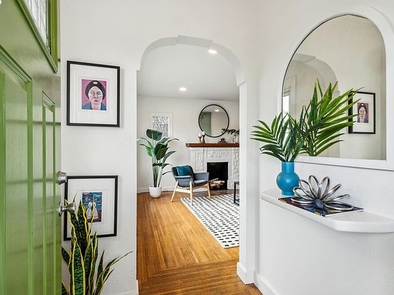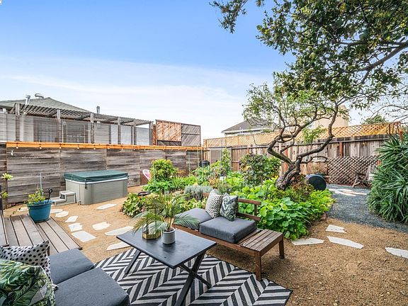 A great opportunity for an owner-occupant or investor, this upgraded 2BD/1BA bungalow with an additional full-service 1BD/1BA apartment offers an oasis in Oakland’s Meadow Brook neighborhood. A beautiful San Francisco Bay view greets you on the 1512 SQFT home’s friendly porch. Inside the architecturally rich living room, enjoy the picture window views while you relax in front of a cozy fireplace flanked by leaded glass windows. Hardwood floors and signature arches span into the dining room with sunny windows and a decorative built-in arched cove. Through another arch, find the home’s sleeping wing where two bedrooms share a renovated full bath. The front bedroom has hillside views. Adjacent to the dining room, the kitchen features new countertops, built-in shelving, plus an adjoining office nook and laundry area. Out the backdoor, enter the lush backyard with a hot tub, patio areas, a large deck, and a bountiful garden. The deck and laundry area are shared by the apartment which has a separate entrance. A new kitchen and full bath compliment the apartment’s spacious living room and bedroom. With a one-car garage and nearby BART, your commute is easy, and the world class amenities of the East Bay are all nearby.