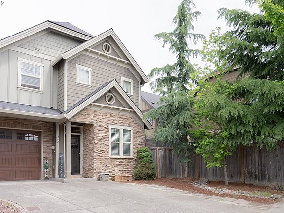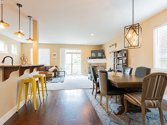 Craftsman style 4 bedrooms, 2 and 1/2 baths. Attached at the garage. Open floor plan living on the main level with high ceilings, wood floors, & gas fireplace. Dining room open to kitchen with granite slab counters, island, & pantry, & sliding doors to backyard, half bath & main level bedroom or office/bonus room. Second floor has 3 large bedrooms, laundry & hall bath. Primary suite includes soaking tub, shower, & walk-in closet. Backyard is fenced with covered patio. No HOA.