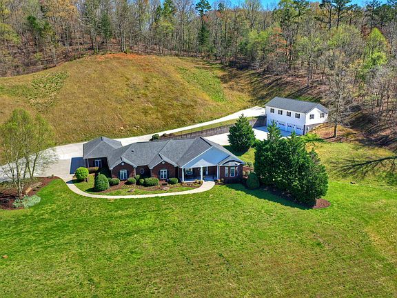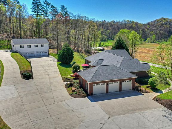Luxurious Living! This exceptional Builder's custom home is perfectly situated on 6 gentle acres, featuring 4BR/3.5BA with beautiful views of rolling pasture and mountains in the distance. Wonderful flowing floor plan. Every Upgrade! All rooms welcome you w/wide arched doorways, well appointed kitchen, 2 pantrys, formal dining, living, den w/granite surround gas log fireplace, breakfast nook, home office & mudroom. Generous master suite w/stunning tray ceiling, spa-like bath, exquisite cabinetry, heated tile floors. You will love the custom lg crown & base molding; 9' ceilings, intercom & security system, huge basement is EZ finish w/built-in cabinetry, full bath, safe room. 3 car attached garage + 4 car detached garage w/28x56 workshop/storage area, professionally landscaped. Less than 5 mi. from town, all paved rds, natural gas, no restrictions. IMMACULATE! Ask for list of special features.