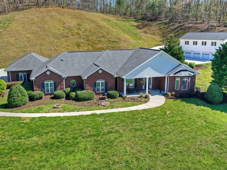 Luxurious Living! This exceptional Builder's custom home is perfectly situated on 6 gentle acres, featuring 4BR/3.5BA with beautiful views of rolling pasture and mountains in the distance. Wonderful flowing floor plan. Every Upgrade! All rooms welcome you w/wide arched doorways, well appointed kitchen, 2 pantrys, formal dining, living, den w/granite surround gas log fireplace, breakfast nook, home office & mudroom. Generous master suite w/stunning tray ceiling, spa-like bath, exquisite cabinetry, heated tile floors. You will love the custom lg crown & base molding; 9' ceilings, intercom & security system, huge basement is EZ finish w/built-in cabinetry, full bath, safe room. 3 car attached garage + 4 car detached garage w/28x56 workshop/storage area, professionally landscaped. Less than 5 mi. from town, all paved rds, natural gas, no restrictions. IMMACULATE! Ask for list of special features.