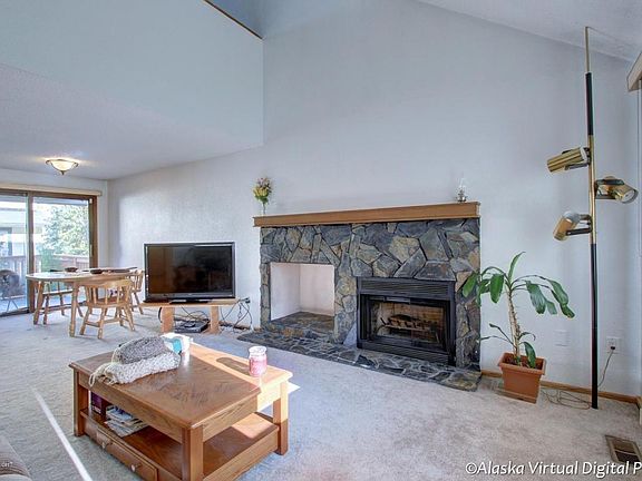 Located on cul-de-sac.Large lot w/green belt-added privacy.Park Alaska toys in driveway & paved pad.Entry way plenty of room for coats/shoes.Snuggle in front of wood burning fireplace.Kitchen has plenty of counter space.Large bonus room ideal for family day care,home school,teenage hangout,or unconventional 3rd bedroom.Upstairs master bedroom has large sitting loft & opens to large upper deck.