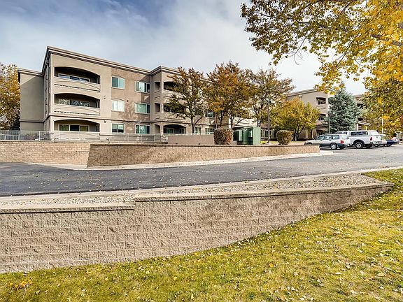 Welcome home to this immaculate, move-in ready unit in popular Bay Bridge Condos. Park in your own deeded space in heated garage, take the elevator to the top floor, and relax in luxury -- all without stairs. Enjoy the open floor plan, vaulted ceilings, track lighting, and new carpet. Dining area with trey ceiling and chandelier. Living room with gas fireplace, west-facing sliding glass doors onto covered balcony with breathtaking mountain views. Kitchen features oak cabinets, skylight, pantry, breakfast bar, white newer appliances and new refrigerator. In-unit laundry with built in cabinets and counters; washer and dryer included. Listen to your favorite tunes over the whole-home speaker system. Master features mountain-view windows, ensuite bathroom with dual sinks, step-in shower and huge walk-in closet. Unit comes with heated and secure, private storage unit in the parking garage. Restrictions: age 55+, no one under 25 living with owners, dogs and cats under 15lbs are welcome.