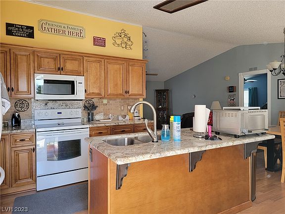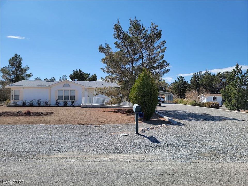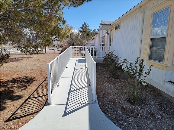 Tucked away and surrounded by the mountain views of Pahrump this single-story home is upgraded with plush carpet that you can sink your feet into. The manmade laminate wood flooring is easy for cleanup. The functional kitchen is perfect for the chef in the family. The large primary bedroom is separate from the other rooms with an upgraded primary bathroom and a large walk-in shower. Relax and unwind in the privacy of your large backyard on your wood deck. Bring your imagination to build a pool, casita, or even another garage for work space. Be prepare to garden with the already made garden space.