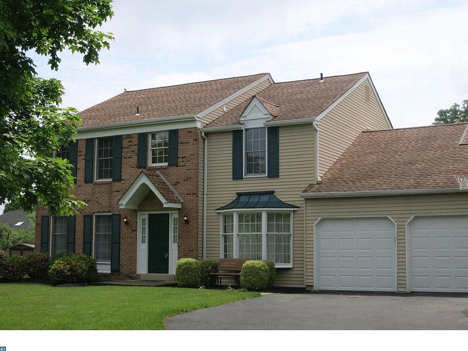 Pretty Brick front colonial ~ Tucked deep in the cul de sac and Ooh what a sweet backyard, open, big, nice and flat. Located within the highly sought after neighborhood of Hampton Chase! Beautiful new kitchen has been added with rich toned cabinets, granite counter tops, under mounted stainless steel sink, new added lighting fixtures and large center island with overhang for additional island seating, recessed lighting and newer durable flooring added. The bright and airy breakfast room has a cathedral ceiling, skylight and newer flooring. There are french doors that lead to the large back deck and huge backyard. A spacious living room with newer carpeting has french doors that open into the family room with floor to ceiling wood burning, brick fireplace and triple window, providing terrific views of the rear yard and plenty of natural light. The Dining Room is currently being used as movie room, but can be easily converted back. A powder room and 1st floor laundry with new exterior door complete the 1st floor living space. Plush carpeting has been added in many rooms. The inviting master suite is quite spacious and offers a large sitting room/office and walk in closet. Take some alone time in the sumptuous new master bath which has been totally renovated. The bathroom is beautiful with double vanities, over sized seamless glass tiled shower, luxurious new soaking tub and lovely tiled floor. Three additional bedrooms and guest bath complete the 2nd floor living space. You also have great space in the basement, just waiting for your finishing touches! The backyard has a wonderful weeping willow tree and plenty of room for a pool! The neighborhood has activities for all ~ Bike and walking trail, playgrounds, ball fields and tennis courts. Within walking distance to Warwick Elementary. Shopping nearby and located within the award winning Central Bucks School District.