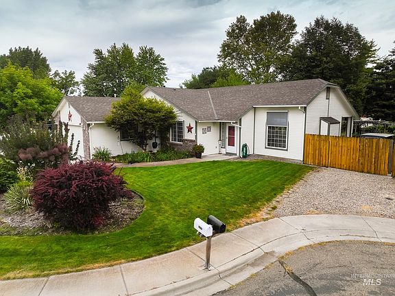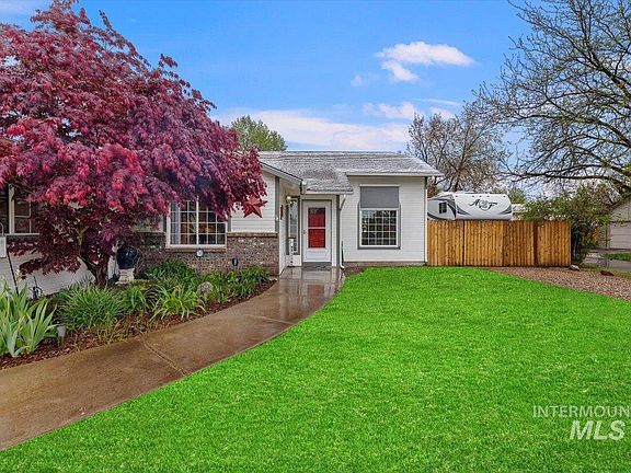This beautifully maintained home is centrally located on a quiet cul-de-sac in West Boise. Close to airport, downtown Boise, shopping and walking distance to Fairmont Park and pool. Vaulted ceilings with a bright open floorplan and updated kitchen. Primary bedroom opens up to your very own backyard oasis (with no back neighbors) that features an extended flagstone patio, storage shed and raised garden bed with many colorful perennial flowers, beautiful pond, covered patio and RV Parking. Bedroom #3 could flex as a work-from-home office space. Double garage with shelving, sprinkler system and water softener. Newer roof, exterior paint, furnace and hot water heater. NO HOA Water service by Capital water $14/$33.