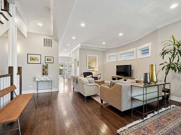 Beautiful single family on lovely Spaulding Avenue in Logan Square! Well cared for home with attractive features like bay windows, crown molding, rich hardwood floors, natural stone selections, soaring ceiling heights, flooded with sunlight, and more. Floor plan delivers form and function combining open layout, lots of closets and defined rooms offering a versatile lifestyle. Bonus room on main floor currently functioning as kids craft room makes for an appealing office space. Bedroom level has sought-after four good size rooms without compromising primary suite. Storage for days from organized closets to unfinished attic easily accessed through hall hatch. Huge yard with brick pavers leads to 2.5 garage. Walk to absolutely everything location!...Blue Line (1.5 blocks!), fabulous restaurants-established like Lula and coming soon like Federales, farmer's market... stroll the boulevards, shop the boutiques. Won't last long!