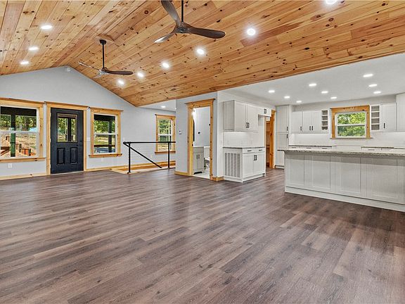 This beautiful 4-bedroom, 3-bathroom home is nestled on a spacious 4-acre lot, offering plenty of privacy and room to roam. Inside, you'll find modern tile flooring and elegant wood siding ceilings that add warmth and character. The full basement boasts two of the bedrooms, featuring tall ceilings that enhance the open and airy feel. The large covered deck at the back of the house is perfect for entertaining or relaxing while taking in the serene views of the expansive property. Whether you’re looking for a peaceful retreat or a family home with ample space, this property has it all.