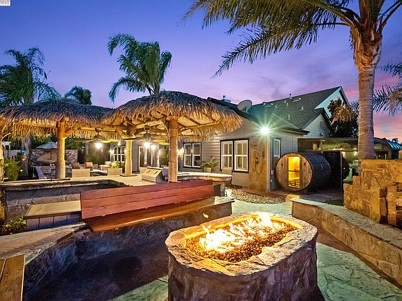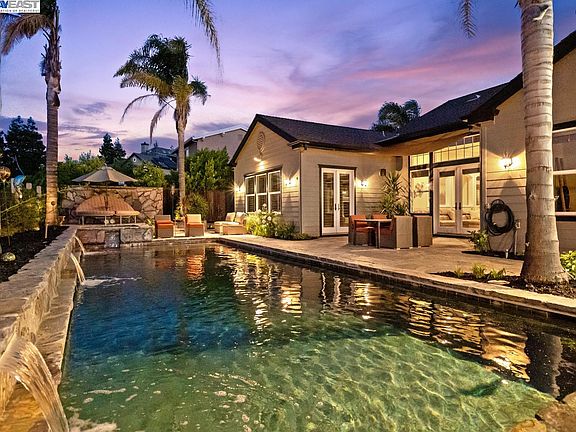 Located in the heart of Livermore Wine Country. This is a unique and rarely available 'Single Level' home located on a large private 15,000 sq ft lot with no rear neighbors and Owned Solar. 3 out of the 4 large bedrooms are EnSuites. Over 3700 sq ft of gorgeous highly upgraded live in space. Built by Pulte in 2004, this open floor plan allows for loads of light, high ceilings, recessed lighting, crown molding, Travertine, and Hardwood floors throughout. Huge gourmet kitchen with an island and large breakfast nook. Formal living and dining room. Gorgeous office area with built-in desk and bookcases. The rear yard offers a custom pool and spa with a beach entry, natural stone, and water feature. A portable dry sauna and separate California sunroom. Cabana area wit/h a BBQ plus an additional sitting area with fireplace. **Open House Saturday, 8/26 1-4pm and Sunday, 8/27 1-4pm**