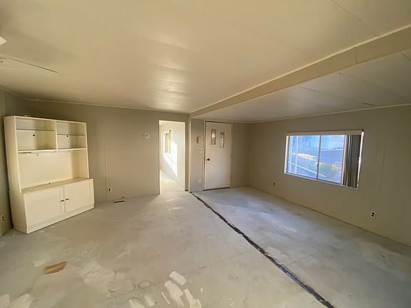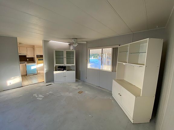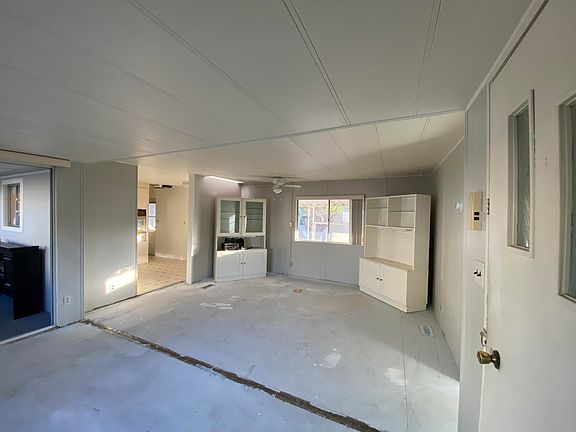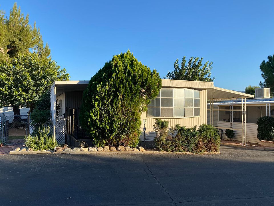 Fresh and clean 2 bedroom and 2 bath mobile located in the Gemstone Park in Acton. Close to fwy access, restaurants and local markets and park features a community pool and clubhouse. This freshly painted both interior and exterior unit features a covered front porch, living room with ceiling fan, kitchen with newer frig included and Primary bedroom with ensuite bath. In unit laundry with newer washer/dryer included. The enclosed patio is perfect as a craft room or office. Roof has a new coat of silicone roof coating. Swamp cooler is less than a year old. Carpet has been removed and floor sealed so buyer can choose their own floor covering. 2 car carport and comes with 2 storage sheds. All that's left is for you to make it home!