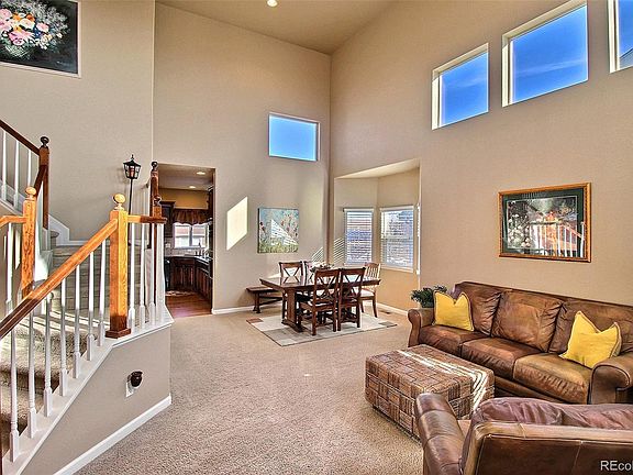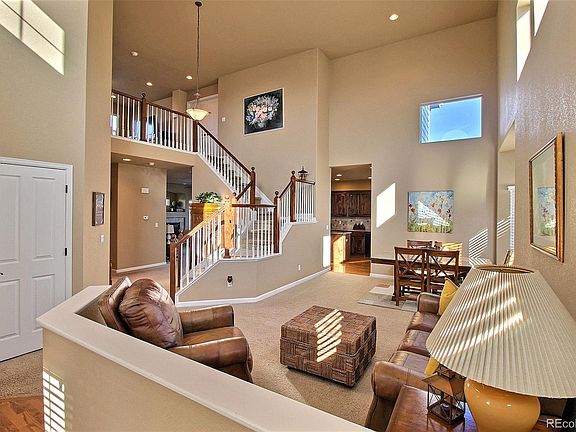 Wow!! You won't want to miss this lovely, well-maintained home in Erie's desirable Vista Ridge golf community. The main level layout is perfect, starting with a grand 2-story entry that is sure to impress. The great room features several large windows making the space feel bright and open. Next is the gourmet eat-in kitchen with granite counters, newer double oven, gas range, alder cabinets, large island, pantry and beautiful wood floors. The rest of the main level consists of a cozy living room with a gas fireplace, office with french doors, half-bath, and laundry room. Upstairs you'll find a spacious loft, two guest bedrooms with a full bathroom, and the master suite. The master suite includes double doors, custom trey ceilings, two walk-in closets, and an incredible 5-piece master bathroom. Walk-out basement is ready to finished, mountain views from the back deck, newer exterior paint/siding/roof, and so much more! Don't miss this one!