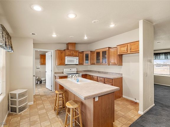 Freshly renovated! Large manufactured Pahrump home! 4 Bedrooms, 2 Bathrooms, Large living & family rooms. All new paint inside and out. Wood-burning fireplace in the living room. Large lot with plenty of space with a fully fenced backyard and of course on a private well and septic.