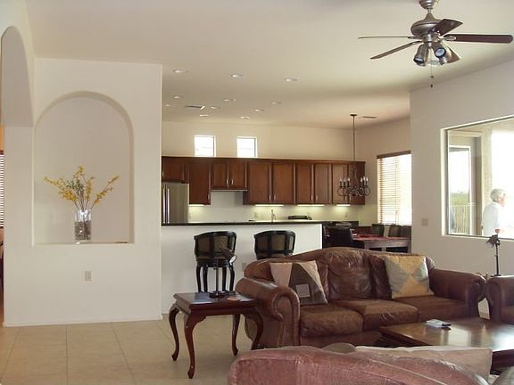 For more information on this property, contact the Listing Agent, The Walsh Team at (520) 918-8153 or MarkW@LongRealty.com. Mountain and Golf Course Views!!! Beautifully appointed home in Canoa Ranch: Gourmet kitchen with granite and cherry cabinets, stainless steel appliances, flat cooktop, center island, raised dishwasher, butlers area, formal dining with chandelier, 18 inch ceramic tile, open den, split bedrooms, master countertops tiled, separate garden tub and shower, generous walk in closet, private entrance to back patio, gas log behive fireplace in great room, laundry room sink and cabinets for extra storage, 3 car garage, ceiling fans and wood blinds. Backyard has see through fencing that looks out over hole 1 and gorgeous views of the mountains. Extended flagstone patio and water fountain feature make this a perfect place for entertaining or just enjoying the beautiful views and weather.